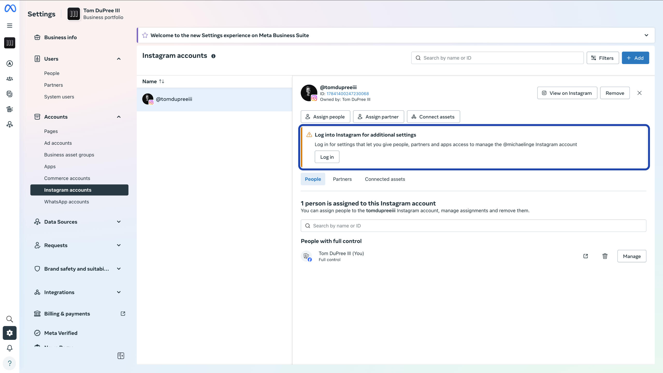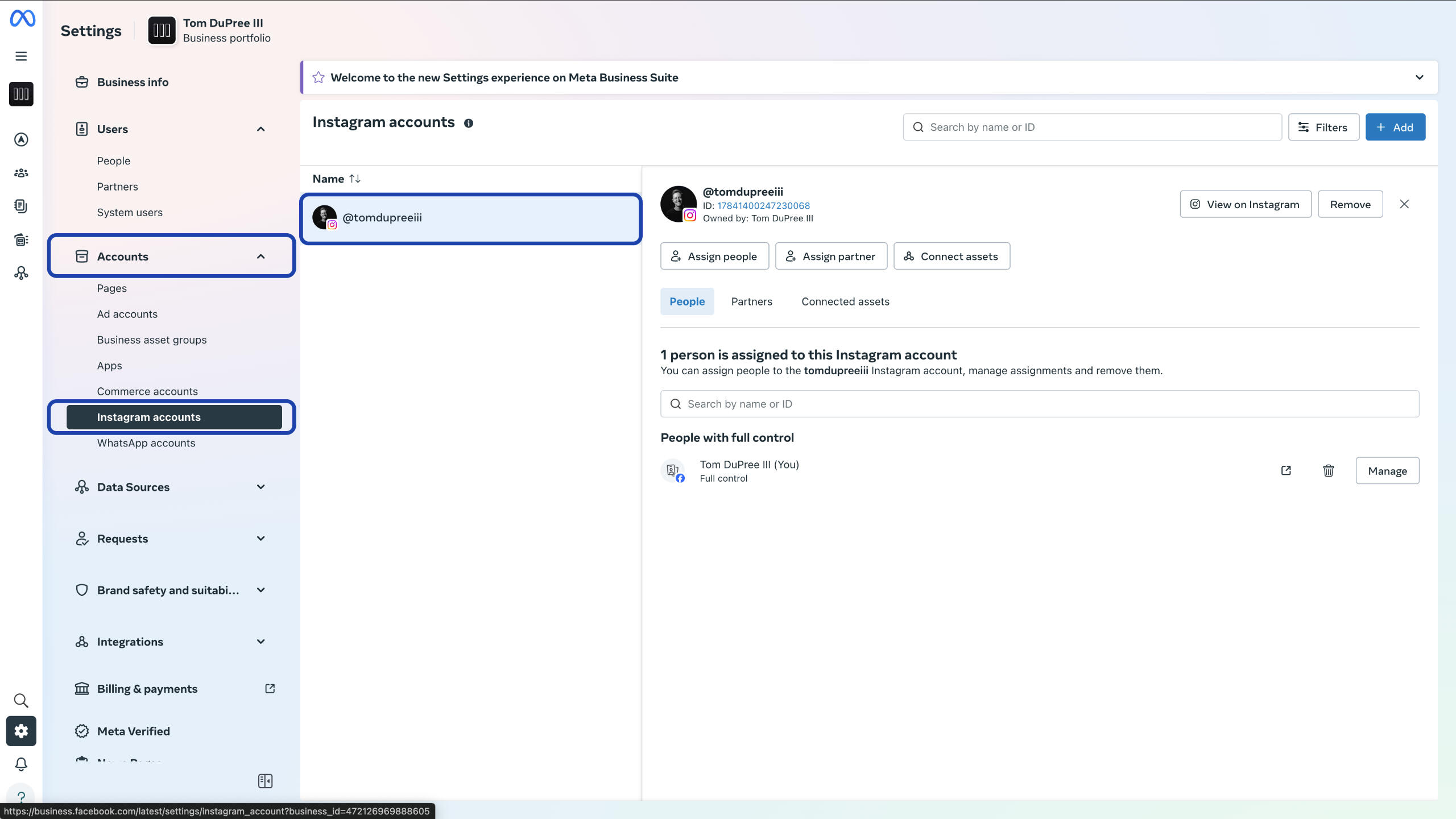 Select “Accounts” and “Instagram accounts” from the left panel. If you see your account here, then it is already connected to your Business Portfolio.