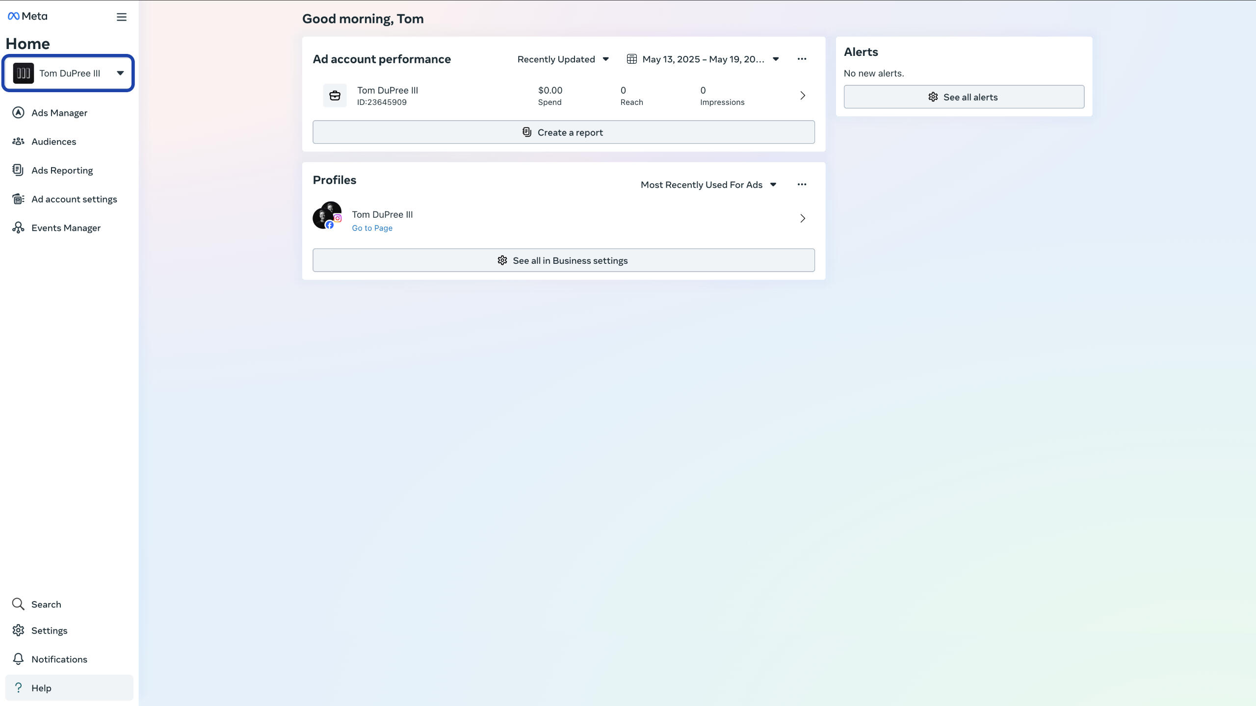 Ensure your Business Manager account is selected from the dropdown. It will appear above the fold.