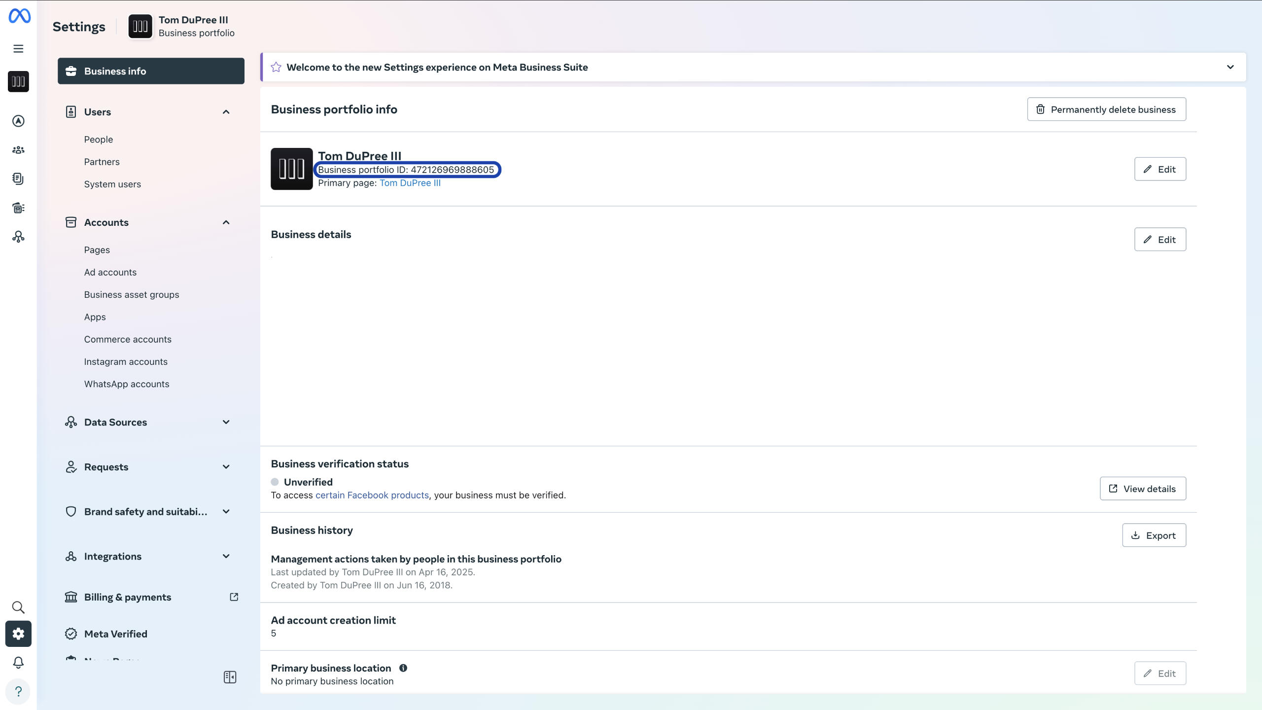 Highlight and copy your Business Portfolio ID at the top of the page.