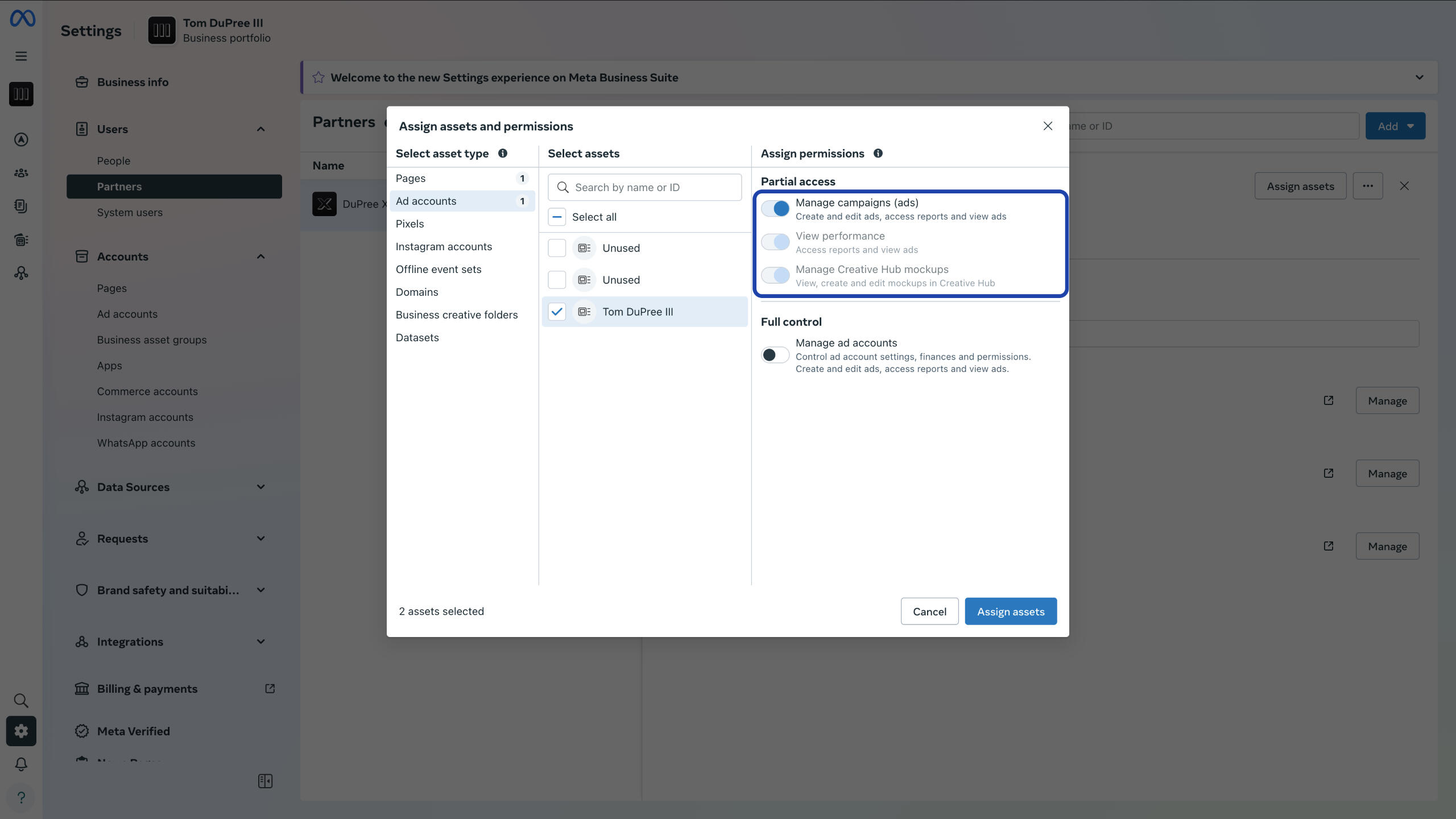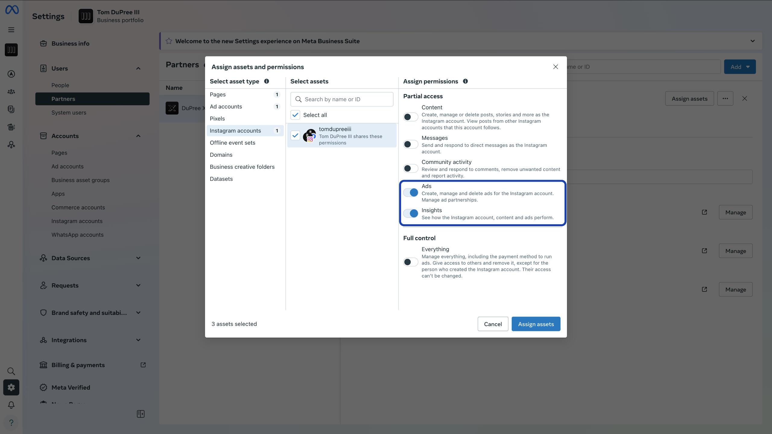 Give us access to your assets using Meta Business Portfolio.Questions? Contact us.