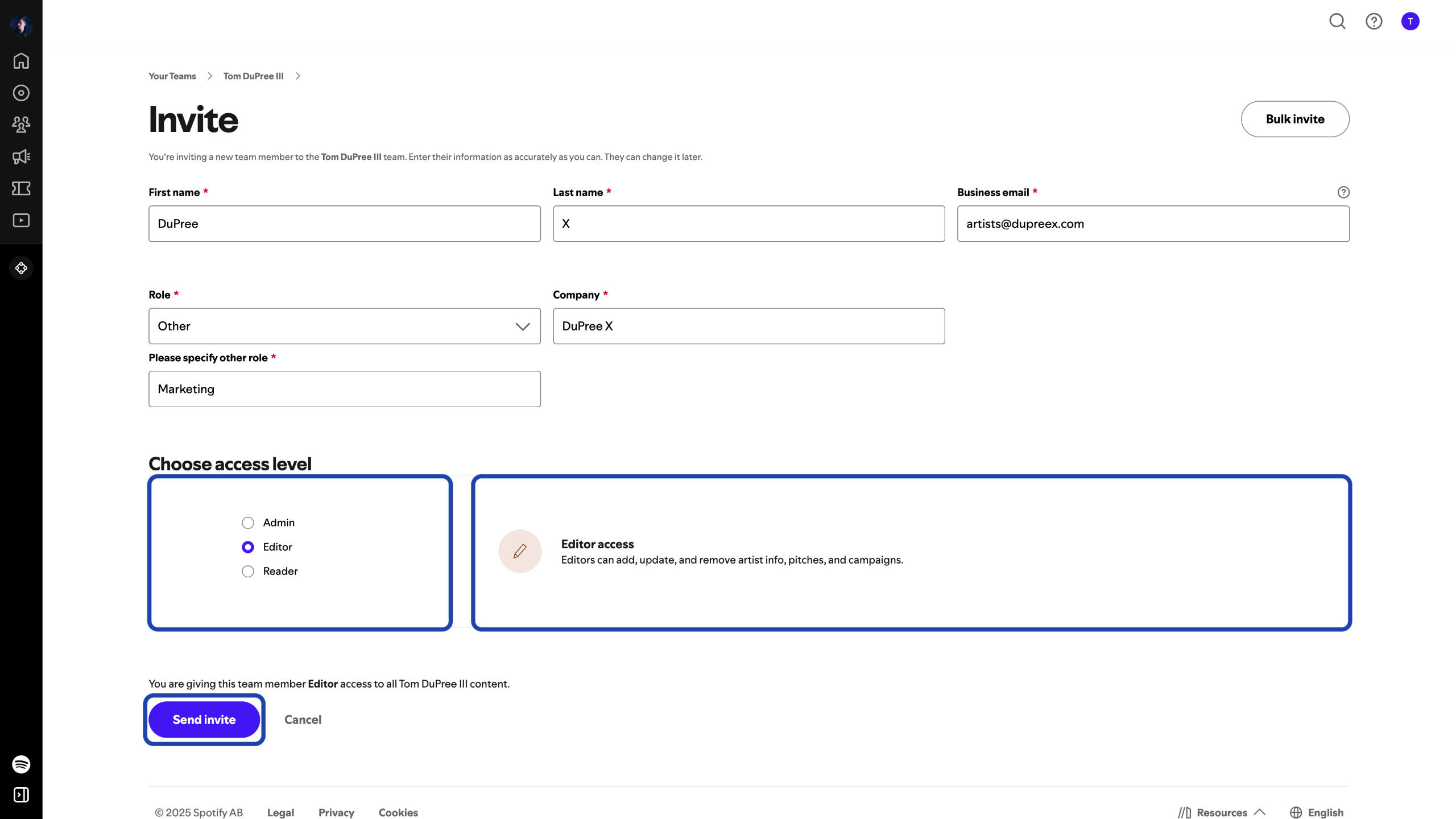 Add DuPree X to your team inside Spotify for Artists.Questions? Contact us.