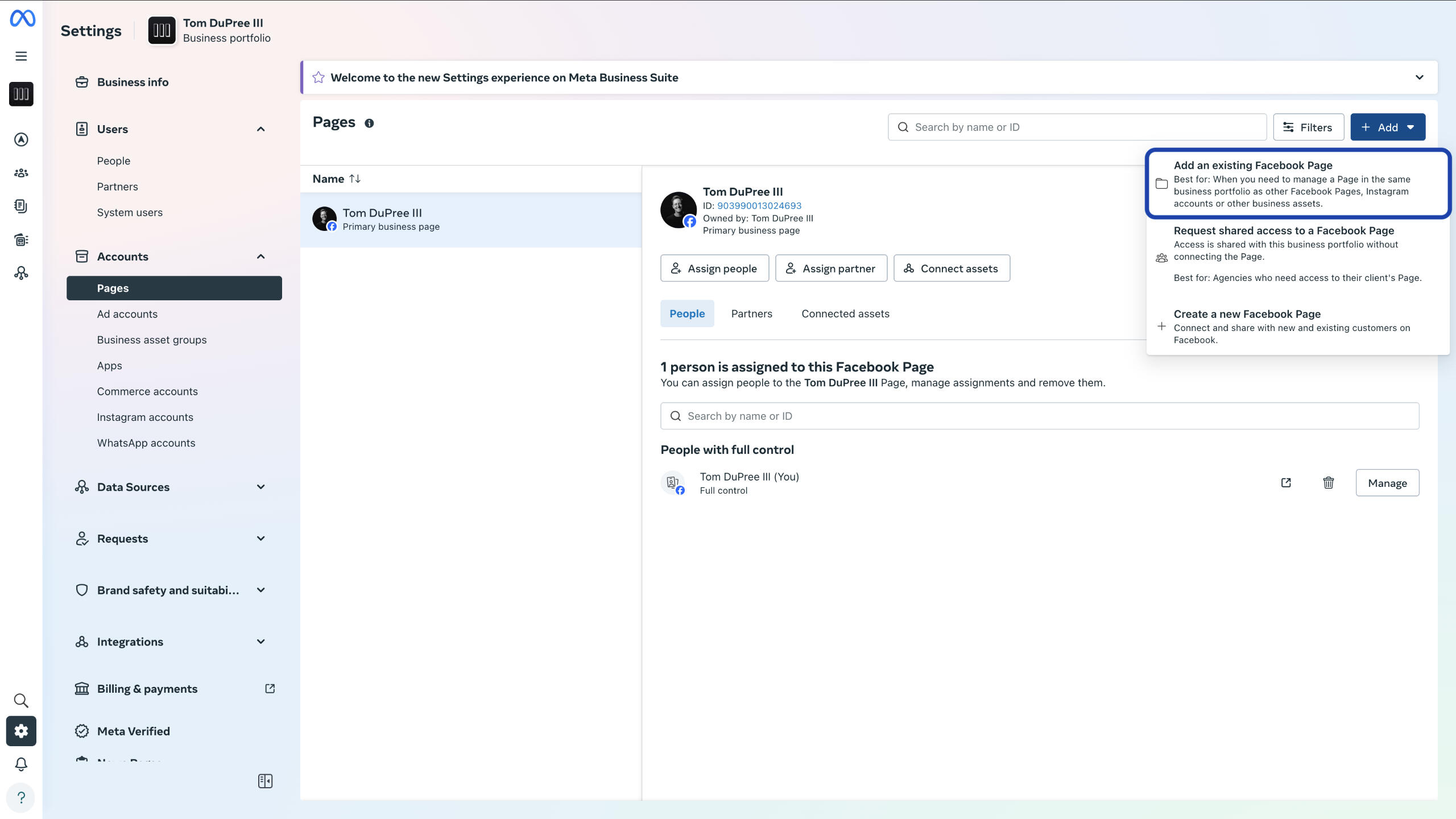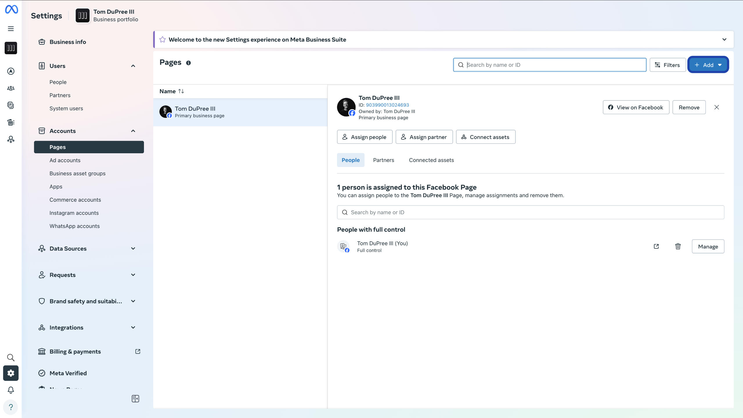 Once your page is connected to your Meta Business Portfolio, it is ready to share.