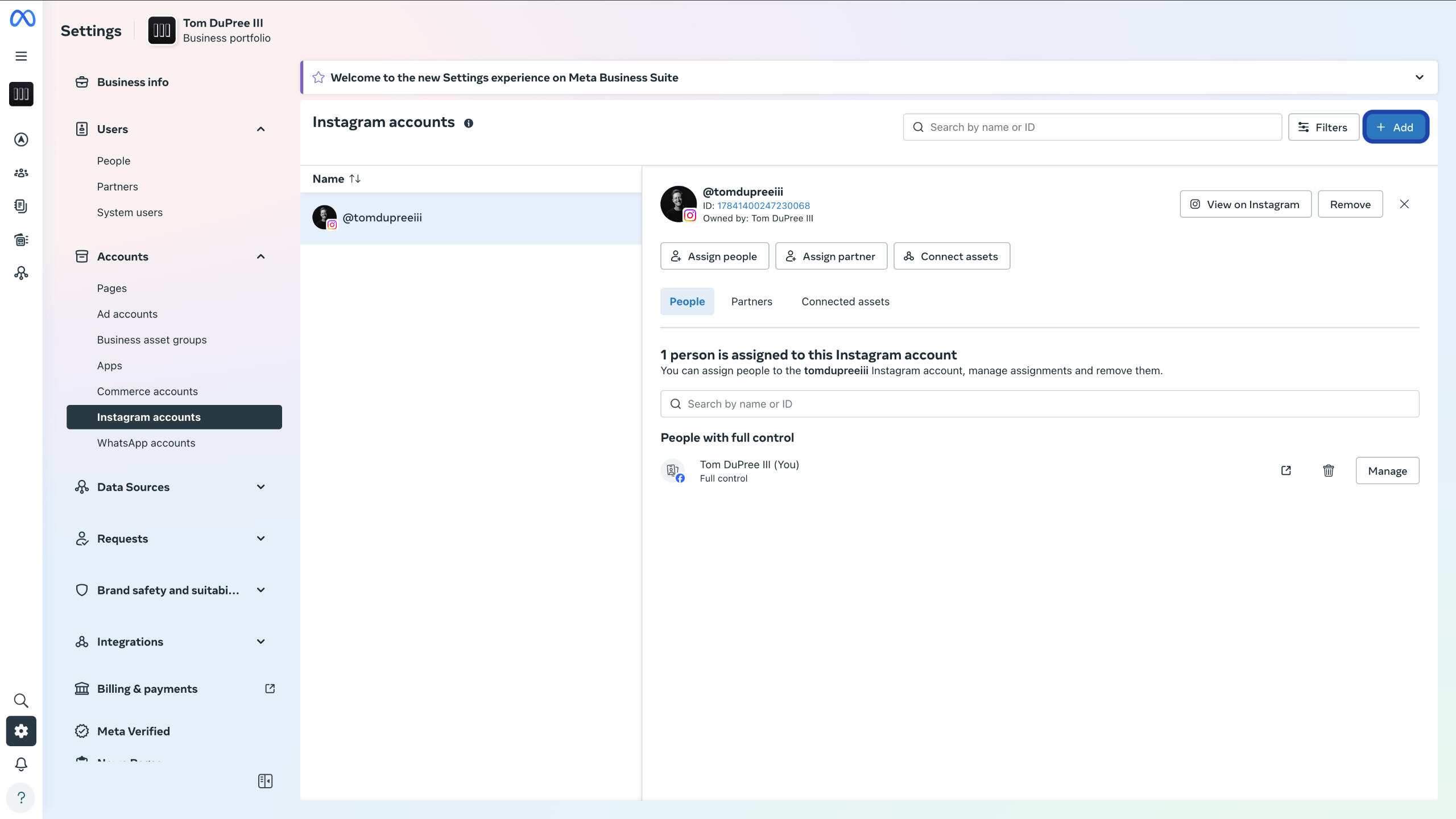 Select “Accounts” and “Instagram accounts” from the left panel. If you see your account here, then it is already connected to your Business Portfolio.