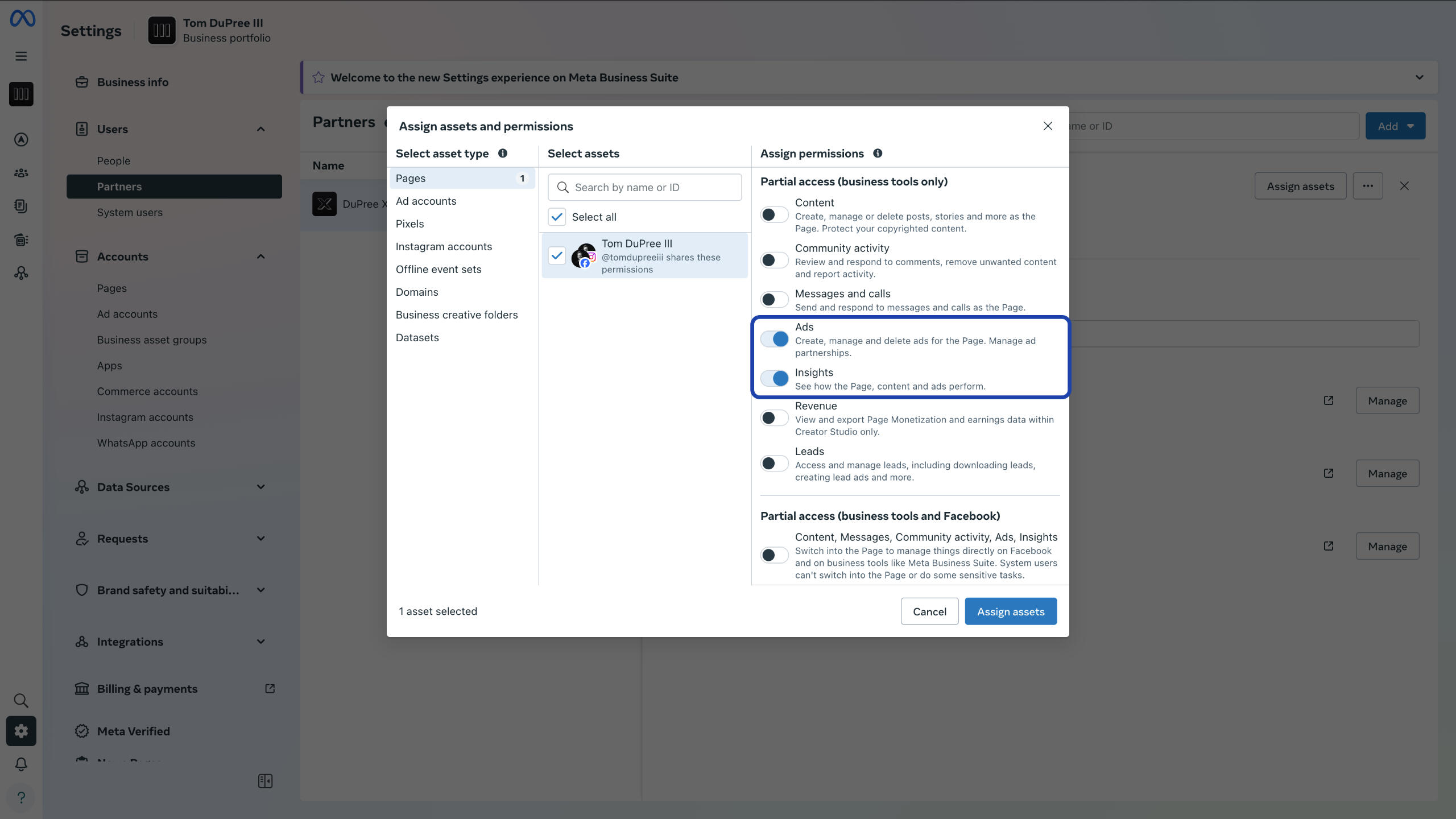 Give us access to your assets using Meta Business Portfolio.Questions? Contact us.